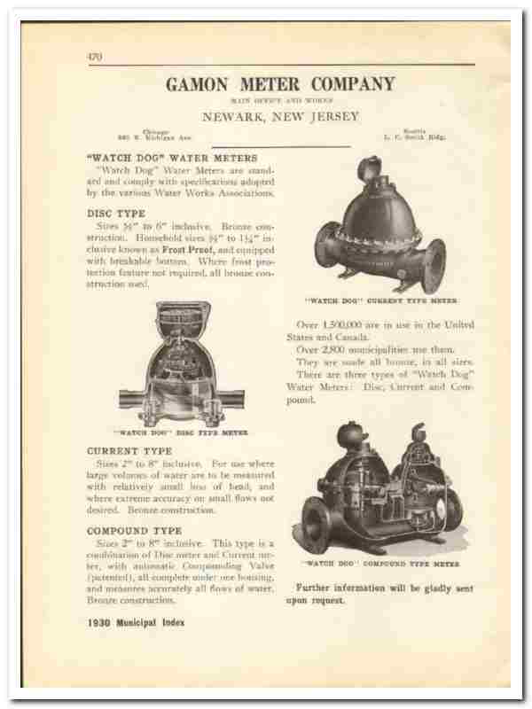 Original 1930 plumbing trade vintage catalog for the GAMON METER COMPANY. Main office and plant was located at Newark, NJ.