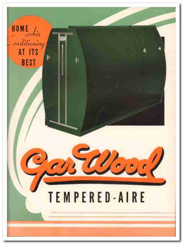 Original heating trade vintage catalog for GAR WOOD INDUSTRIES, INC. Main office and factory was located in Detroit, MI. Home Air Conditioning At Its Best. Manufacturers of Tempered-Aire Heating and Air Conditioning for the Home. In the Winter, Spring and Autumn you get pure, filtered air that banishes dust and dirt from your home and lightens household cleaning, Circulated Air that gently and evenly distributes warmth and maintains freshness. In the summer, Tempered-Air makes your house more comfortable to live in by using the blower and duct work as a ventilating system. Rating and dimensions chart for Tempered-Air models 001, 101, 201, 301, 401 and 501. Gar Wood Industries was known to manufacture equipment containing asbestos. Disbound from a large 1940 home builders heating catalog, this unique old four page technical brochure would display wonderfully matted and framed. Nice cover graphics. A marvelous addition to your retro heating equipment library. Pages are detached and may contain a small amount of residual glue on edge.