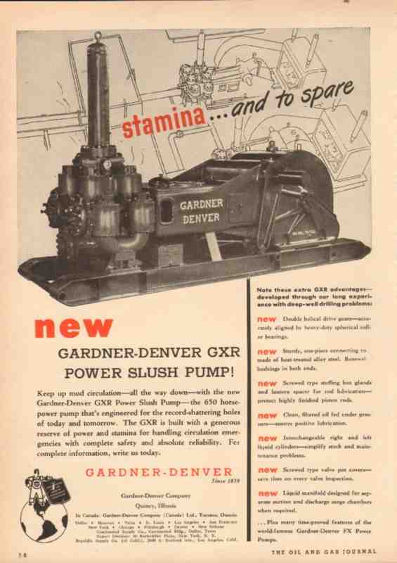 Gardner-Denver Company 1950 Vintage Ad GXR Power Slush Pump Stamina