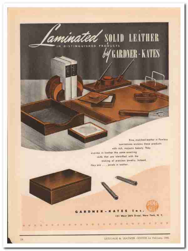 Gardner-Kates Inc 1946 Vintage Ad Leather Products Laminated Solid