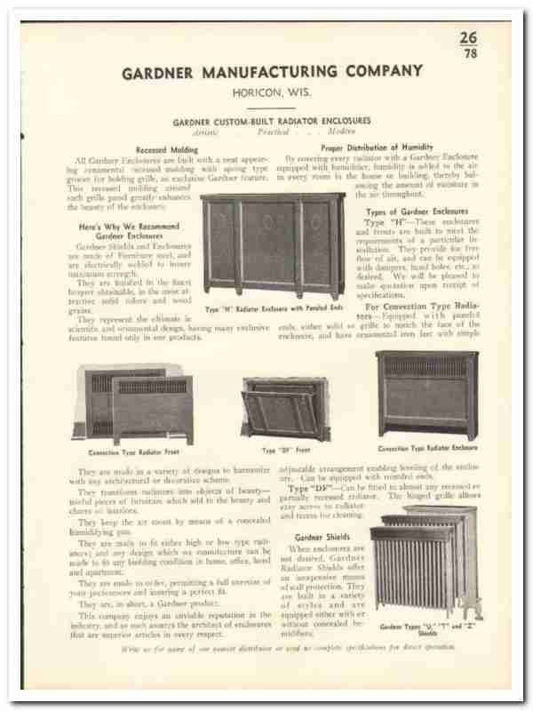 Gardner Mfg Company 1935 vintage heating catalog radiator enclosures
