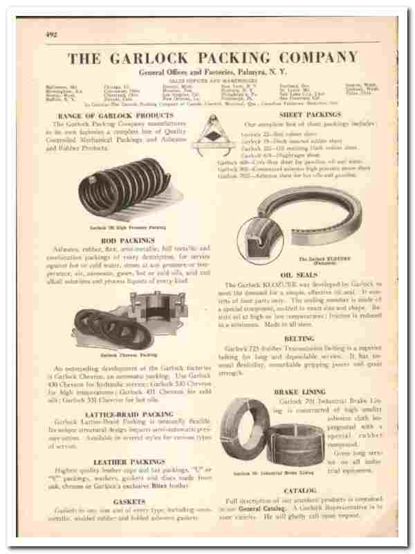 Original 1942 industrial trade vintage catalog for the GARLOCK PACKING COMPANY. Main office and plant were located in Palmyra, NY.