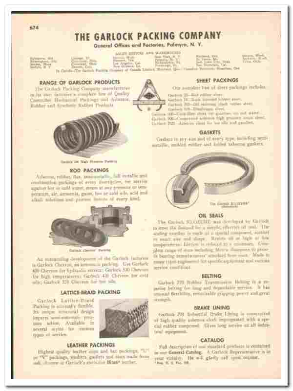 Original 1948 industrial trade vintage catalog for the GARLOCK PACKING COMPANY. Main office and factories were located in Palmyra, NY.