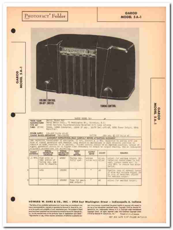 garod model 5a-1 ac-dc 5-tube am radio receiver sams photofact manual