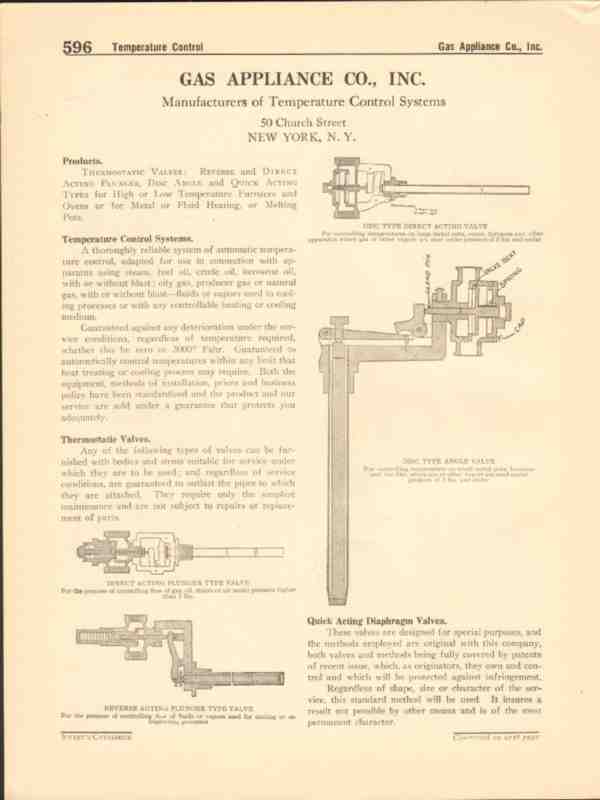 Gas Appliance Company 1916 Vintage Catalog Temperature Control Systems