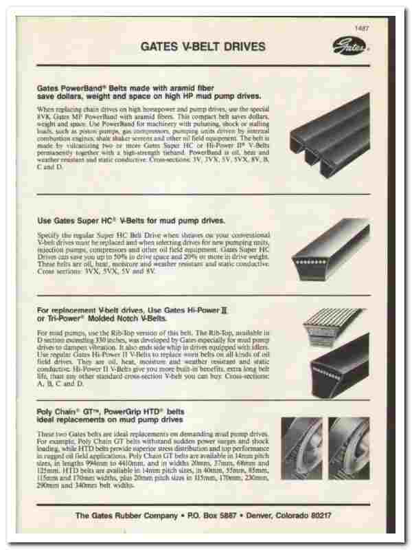Gates Rubber Company 1984 Vintage Catalog Oil Field V-Belt Drives Hose