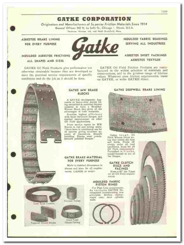 Gatke Corp 1947 vintage oil gas catalog oilfield asbestos brake lining