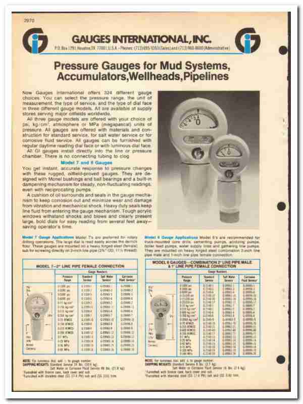 Original 1981 Oil and Gas trade vintage catalog for GAUGES INTERNATIONAL, INC. Main office and plant was located in Houston, TX.