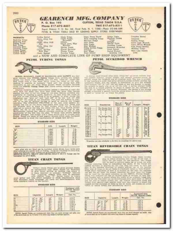 Gearench Mfg Company 1950 vintage oil catalog oilfield Petol Titan