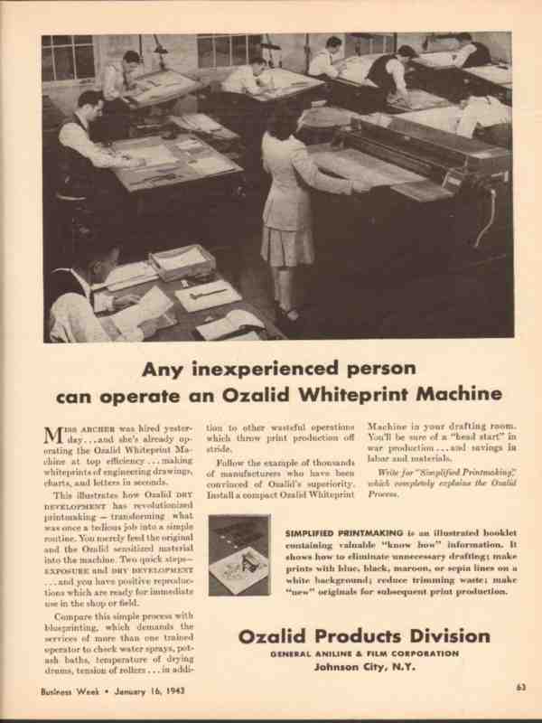general aniline film company 1943 ozalid whiteprints saving vintage ad