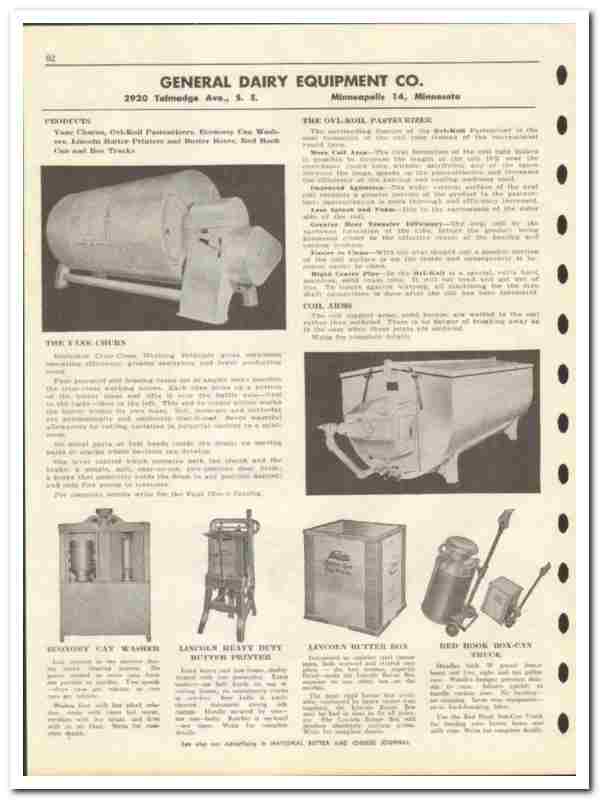 Original 1946 dairy trade vintage catalog for the GENERAL DAIRY EQUIPMENT COMPANY. Main office and plant was located at 2920 Taladge Avenue SE, Minneapolis, MN.