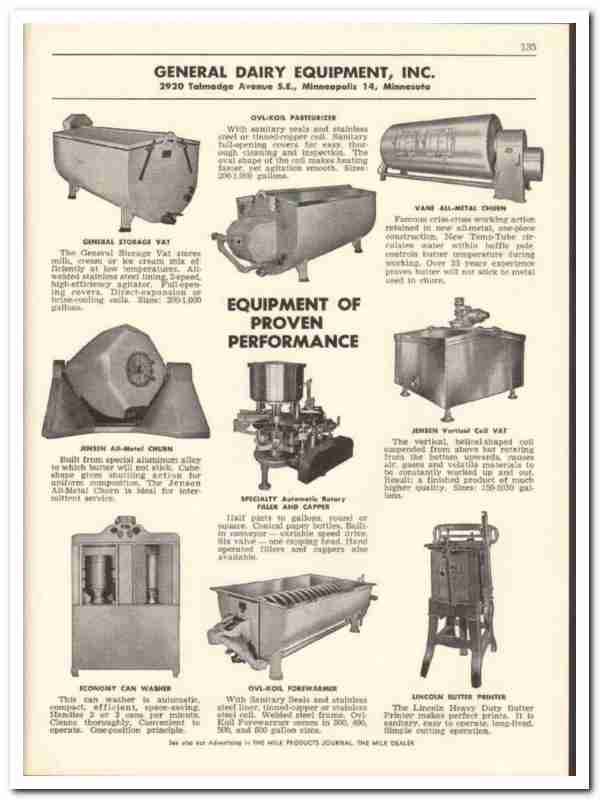 Original dairy trade vintage catalog for GENERAL DAIRY EQUIPMENT, INC. Main office and plant was located at 2910 Talmadge Avenue SE, Minneapolis, MN