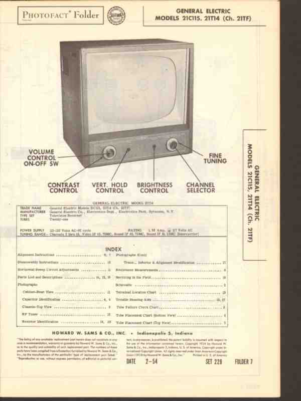 general electric model 21c115 21t14 television sams photofact manual