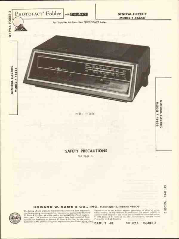 general electric model 7-4665b am fm clock radio sams photofact manual