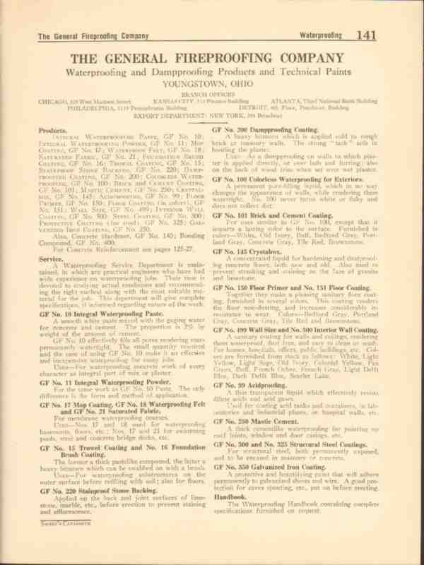 General Fireproofing Company 1916 Vintage Catalog Paint Waterproofing