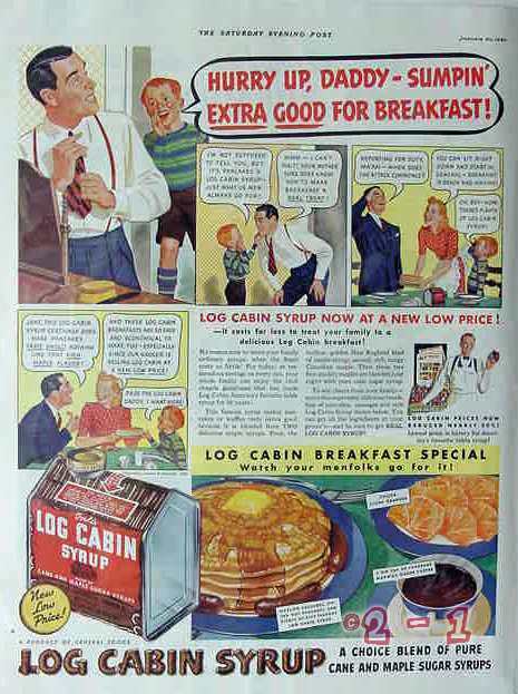 general foods 1940 hurry up daddy towles log cabin syrup vintage ad