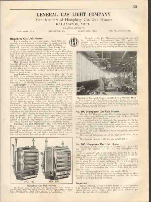 General Gas Light Company 1931 Vintage Catalog Heater Humphrey Unit