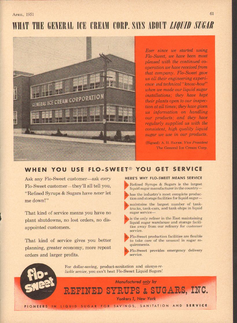 General Ice Cream Corp 1951 Vintage Ad Refined Syrup Sugars Flo-Sweet