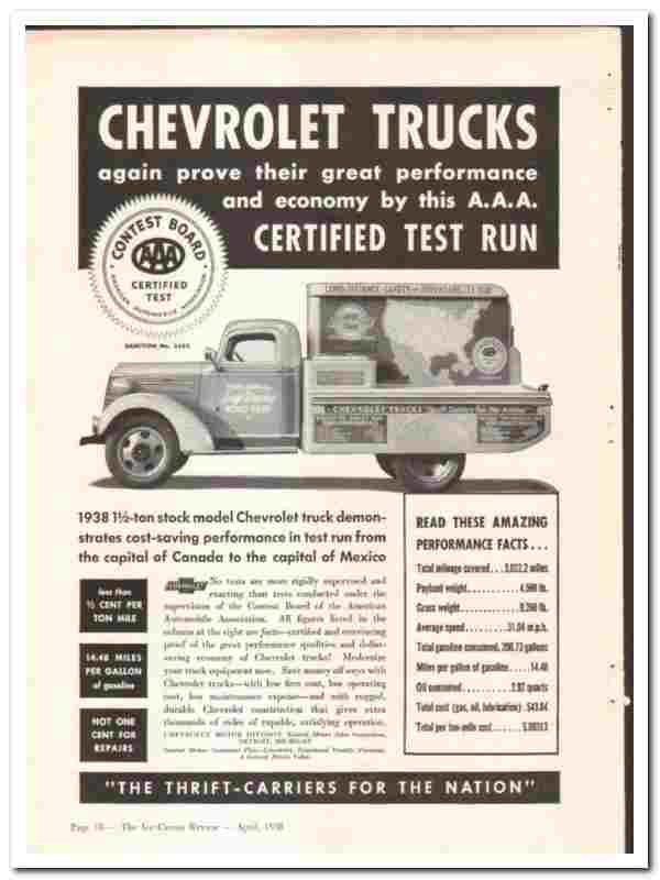 Manufacturers of Chevrolet Trucks. 'Again Prove Their Great Performance and Economy by this A.A.A. Certified Test Run'.