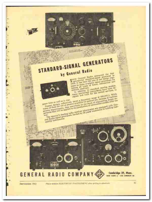 Since General Radio pioneered the first commercial standard-signal generator in 1928, it has been the aim of our design engineers to make available signal generators for testing all types of home, commercial and military receivers.