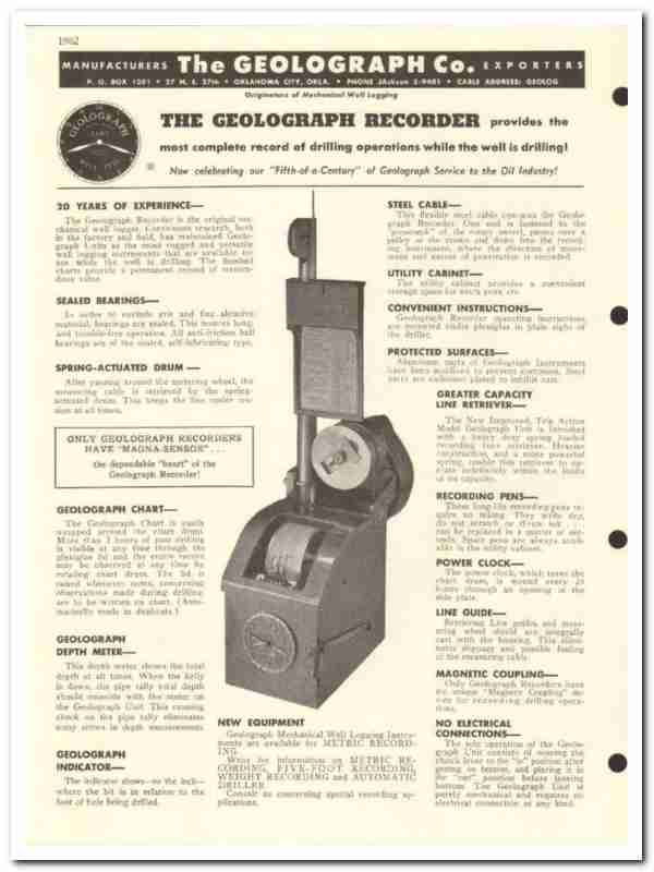 Original 1959 Oil and Gas trade vintage catalog for GEOLOGRAPH COMPANY. Main office and plant was located at 27 NE 27th, Oklahoma City, OK.