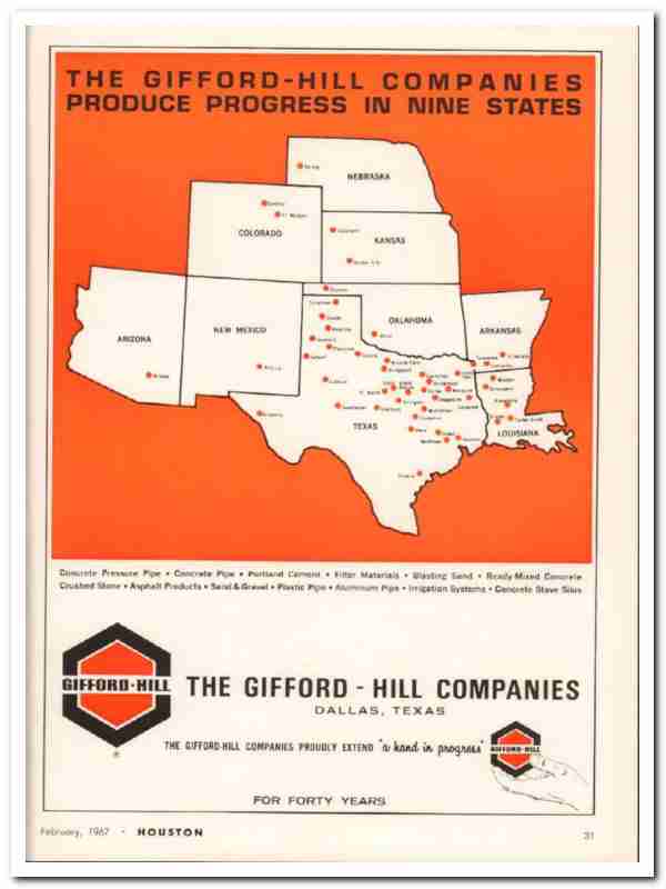 gifford-hill companies 1967 progress nine states concrete vintage ad