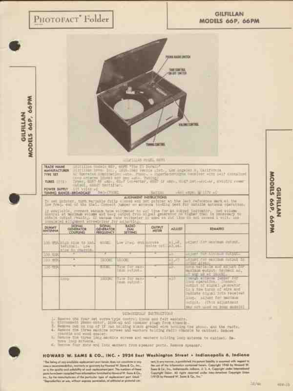 gilfillan model 66p 66pm am radio phonograph sams photofact manual