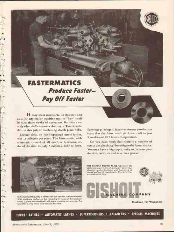 gisholt machine company 1953 fastermatics produce faster vintage ad