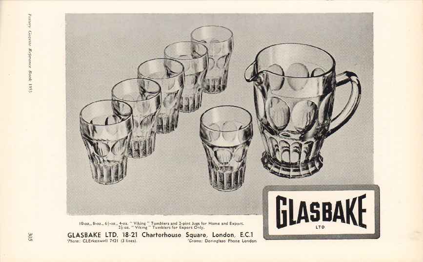 glasbake ltd 1953 viking tumblers jugs home export glass vintage ad