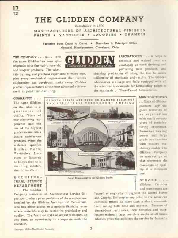 Glidden Company 1938 Vintage Catalog Paint Architectural Specification