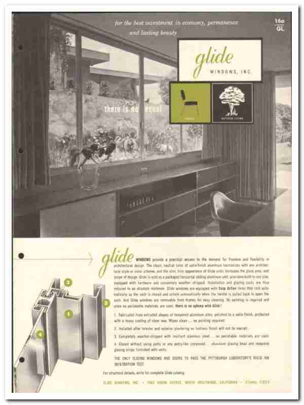 Original windows trade vintage catalog for GLIDE WINDOWS, INC. Main office and plant was located at 7463 Varna Avenue, North Hollywood, CA.