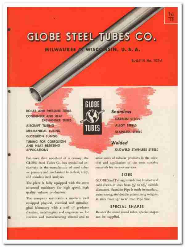 Globe Steel Tubes Company 1945 vintage catalog seamless welded tubing