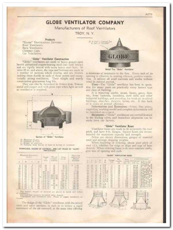 Globe Ventilator Company 1933 Vintage Catalog Roof Ventilating Devices