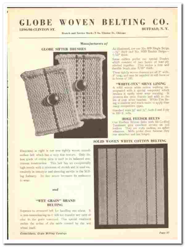 Original 1941 grain milling trade vintage catalog for the GLOBE WOVEN BELTING COMPANY. Main office and plant were located at 1396-98 Clinton Street, Buffalo, NY. and at 9 South Clinton Street, Chicago, IL.