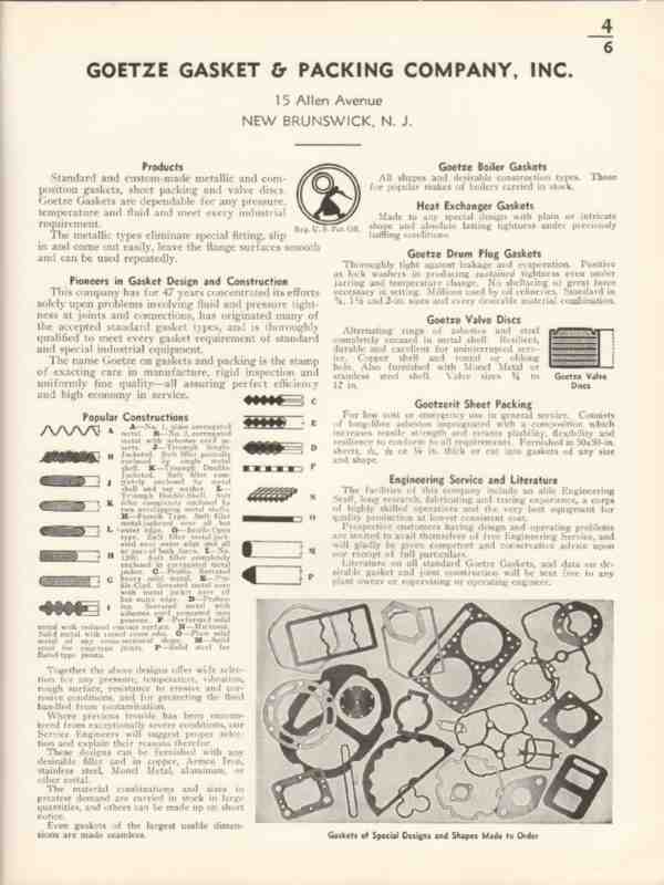 Goetze Gasket Packing Company 1942 vintage industrial catalog