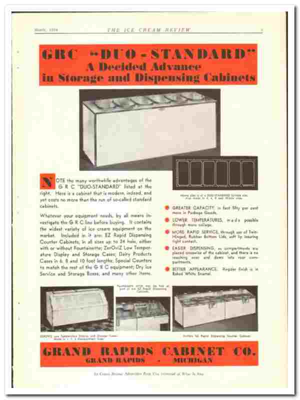 Grand Rapids Cabinet Company 1934 vintage ice cream ad Duo-Standard