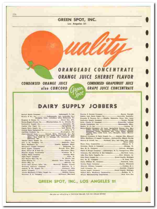 Green Spot Inc 1946 vintage dairy catalog Orangeade orange juice