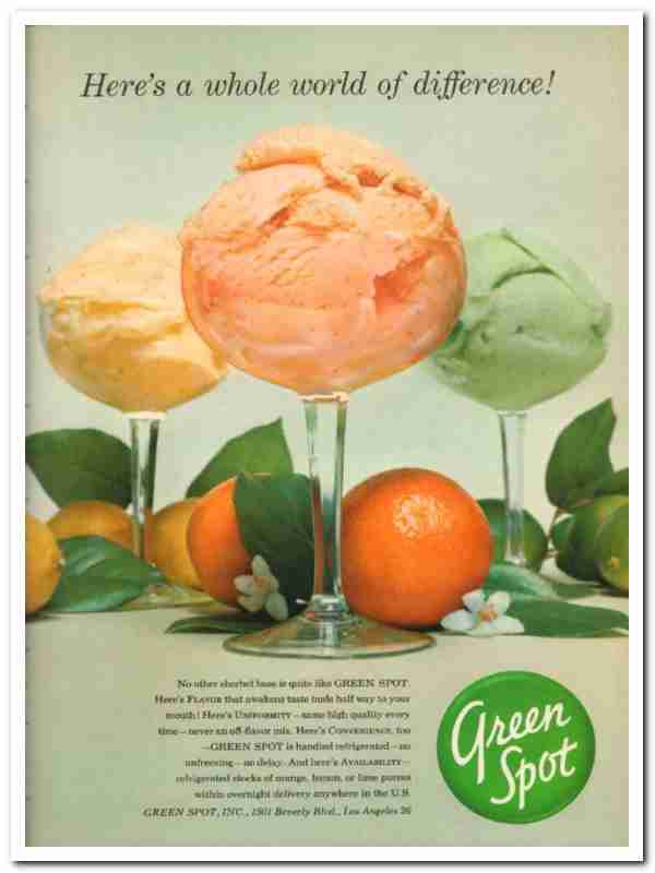 Green Spot Inc 1960 Vintage Ad Ice Cream Sherbet World Difference
