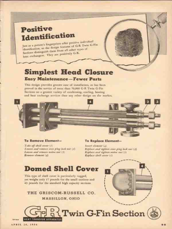 Griscom-Russell Company 1954 Vintage Ad Positive Identification G-Fin
