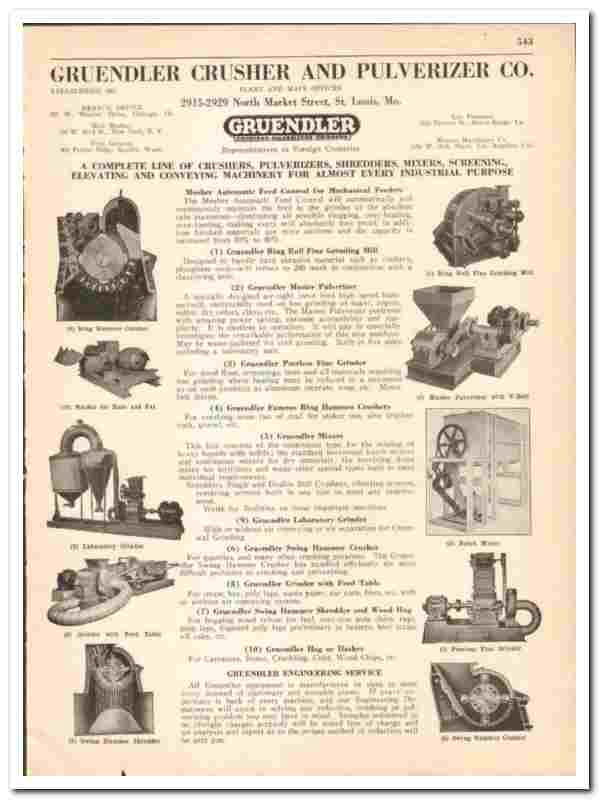 Original 1942 industrial trade vintage catalog for the GRUENDLER CRUSHER & PULVERIZER COMPANY. Main office and plant were located at 2915-2929 North Market Street, St Louis, MO. (Established 1885).