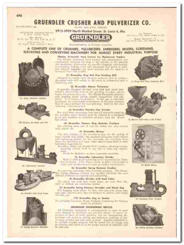 Original 1948 industrial trade vintage catalog for the GRUENDLER CRUSHER & PULVERIZER COMPANY. Main office and plant were located at 2915-2929 North Market Street, St. Louis, MO. (Established 1885).