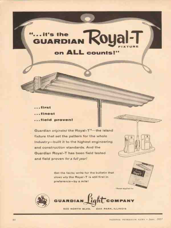 guardian light company 1957 royal-t service station fixture vintage ad