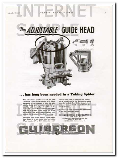 Guiberson Corp 1934 Vintage Ad Oil Tubing Spider Adjustable Guide Head