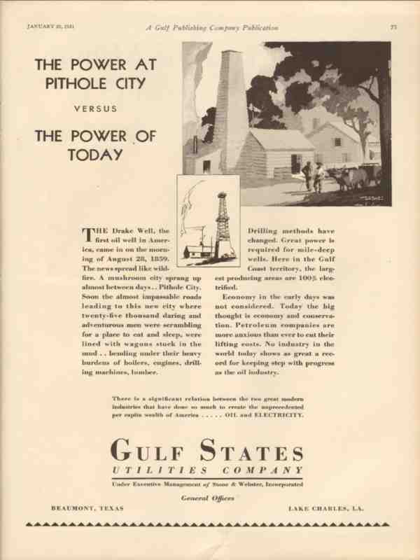 Gulf States Utilities Company 1931 Vintage Ad Power Pithole City Today