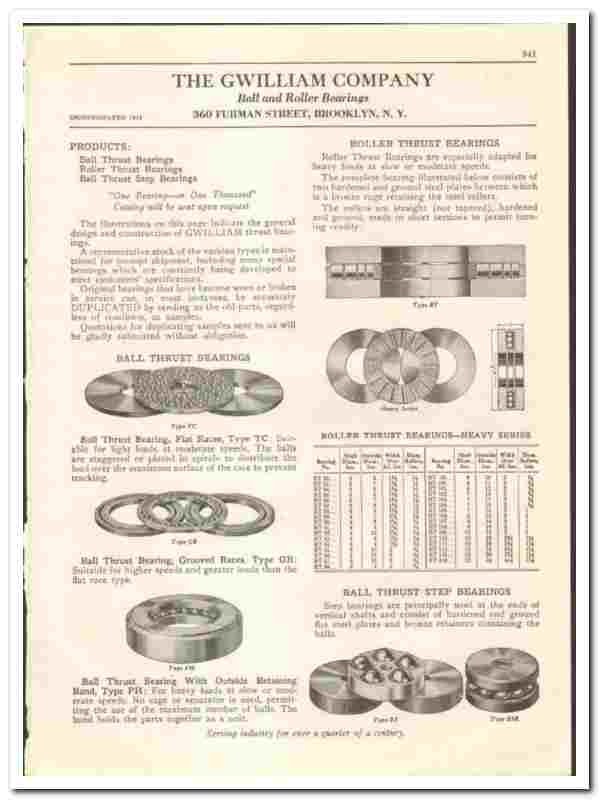 Gwilliam Company 1941 vintage industrial catalog ball roller bearings