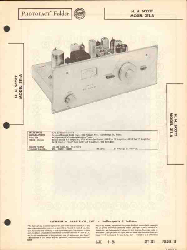 h h scott model 331-a 7 tube fm radio tuner sams photofact manual
