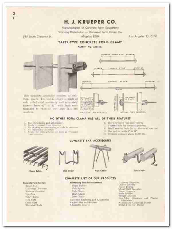 H J Krueper Company 1948 vintage concrete catalog form equipment clamp