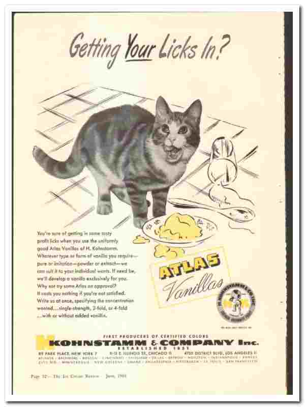 Manufacturers of Atlas Vanilla Flavors for Ice Cream. 'Getting Your Licks In?'.