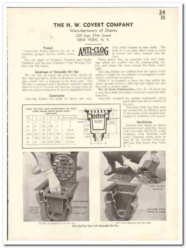 H W Covert Company 1935 vintage plumbing catalog floor drain Anti-Clog