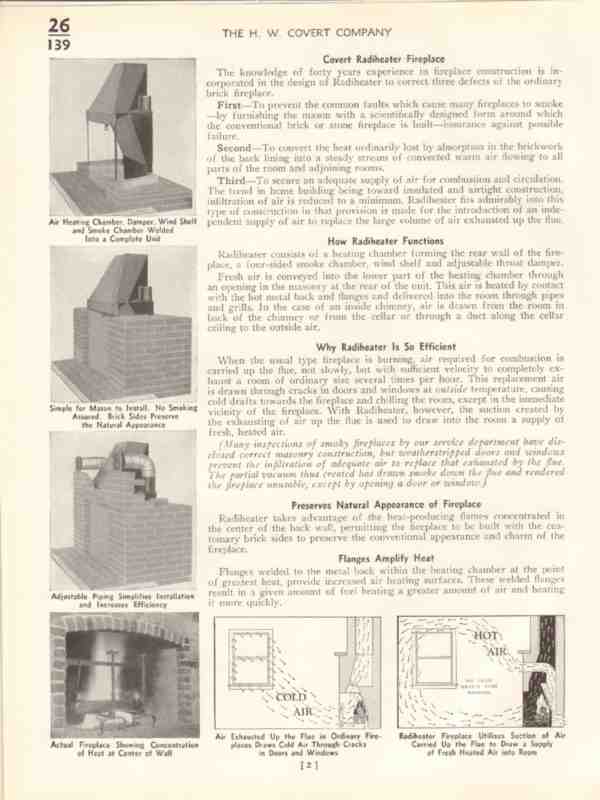H W Covert Company 1938 Vintage Catalog Radiheater Fireplace Equipment